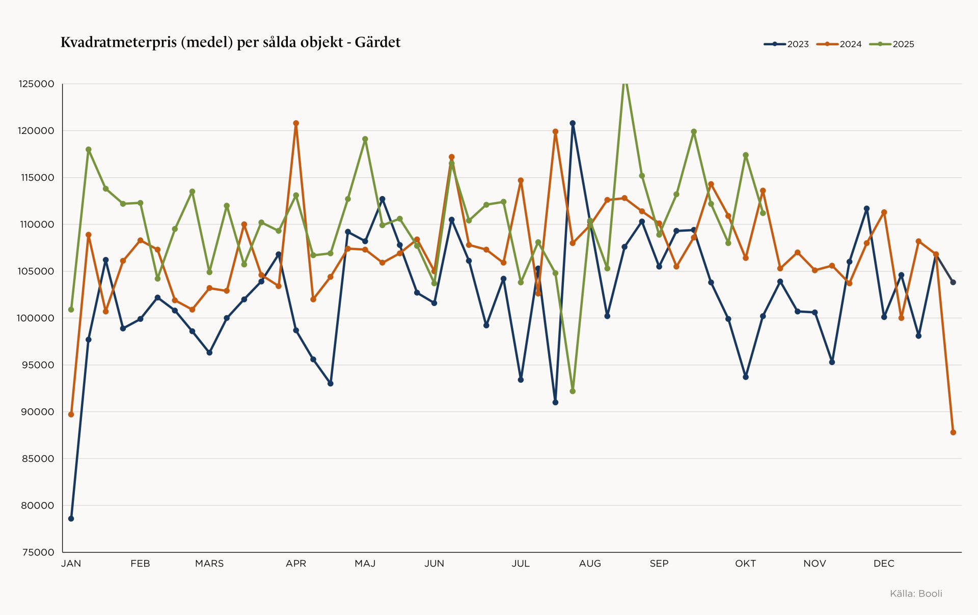Nedan ser ni grafen för prisutvecklingen på Gärdet.